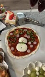 我が家では、ちょっと先駆けで、雪だるまのピザを作りました。